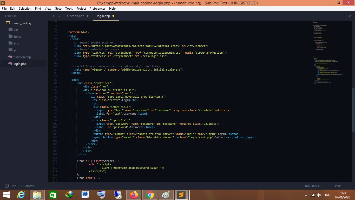 Setelah function kita buat, selanjutnya kita akan buat halaman login.php yang akan kita jadikan sebagai halaman default. Pertama kali user akses. akan redirect ke halaman login.php