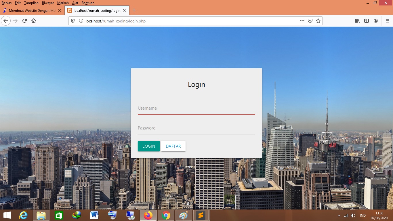 Setelah itu coba akses websitenya di “localhost/rumah_coding/login.php”