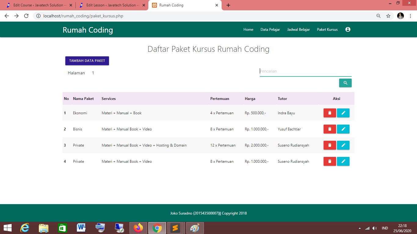 Kemudian Copy source codenya dibawah postingan ini dan save. Setelah itu coba akses menu Paket Kursus. Jika berhasil akan muncul halaman Paket Kursus seperti dibawah ini.